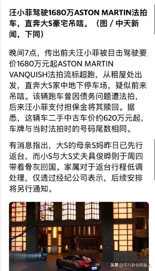 另外,昨夜有媒體拍到一輛豪車,急匆匆開往S家,被媒體揣測是汪小菲迫不及待到S家祭拜。