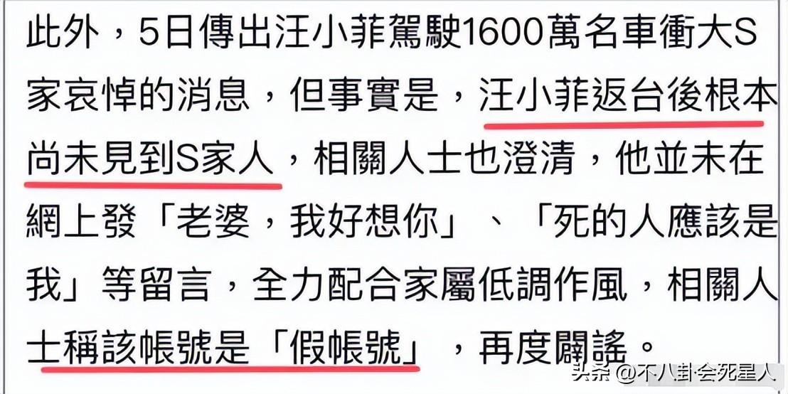 甚至,汪小菲在曾經與大S一起錄製的綜藝下面留言“老婆我想你”的那個賬號,今天都被全盤否定,臺媒稱該留言並非是汪小菲本人操作,而是假賬號留言。