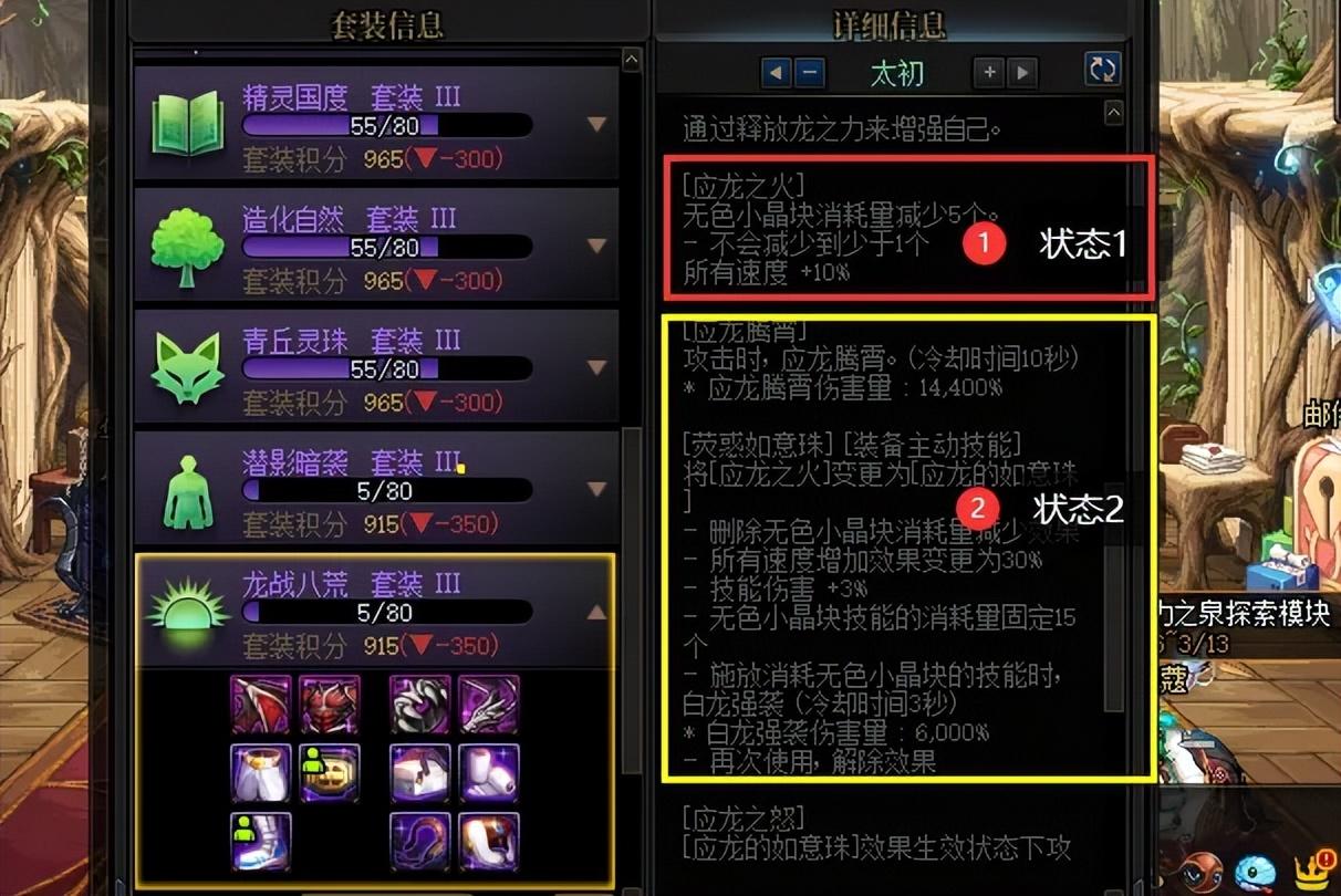 也就是說,“龍戰八荒”需要進入到「狀態2」,觸發3%技攻之後,才能實戰傷害最大化。