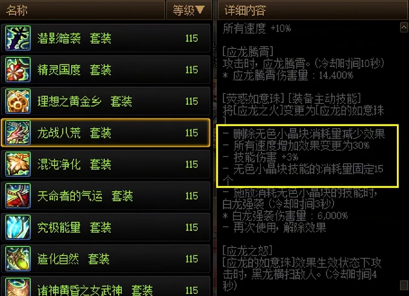 而相比之下,“龍戰八荒”纔是115版本最適合平民玩家的套裝!