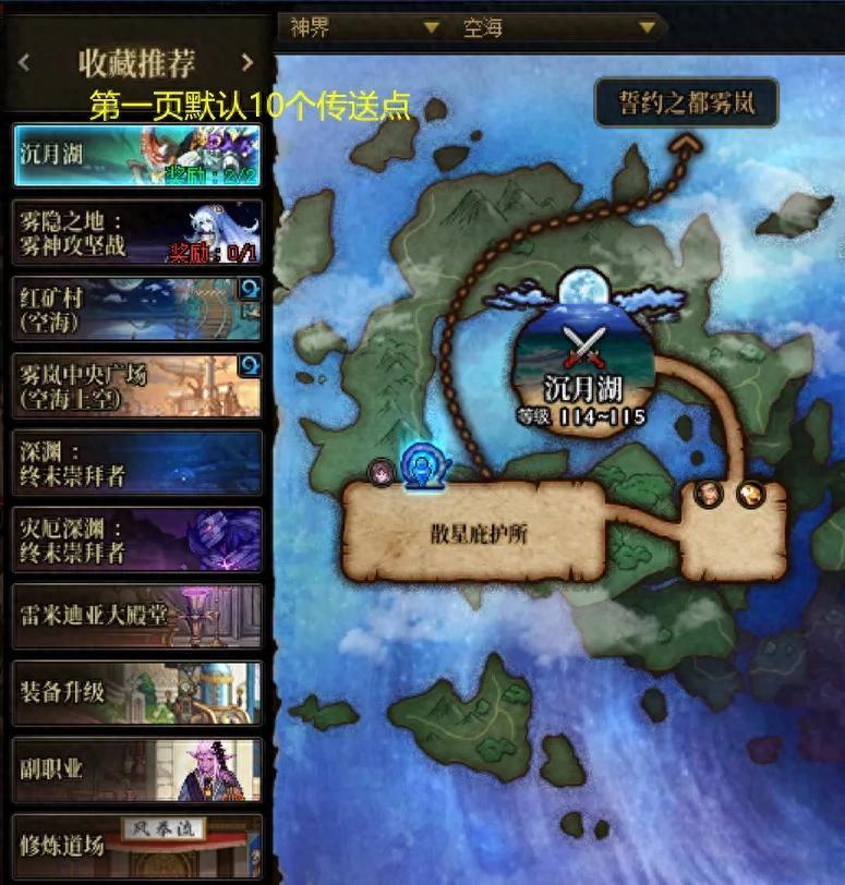 賽麗亞房間往右走,會出現10個默認的收藏推薦,那如果我們還想額外收藏自己想要的傳送點怎麼辦呢?