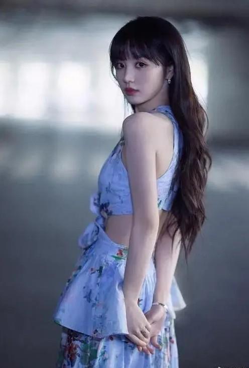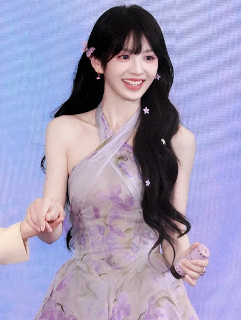 田曦薇雖然很瘦,但是卻是屬“瘦而不柴”的類型,手臂上的肌肉線條特別好看,給人一種“健康美”的既視感,所以穿這種掛脖款式的紫色長裙,完全就沒有消瘦乾癟的情況,反而顯得很有生命力。