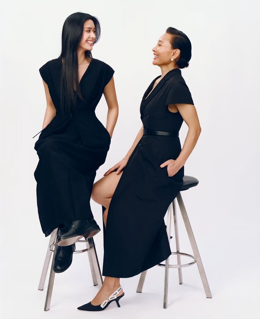 帶着女兒一起出席活動的陳沖,穿着一件V領款式的黑色連衣裙,低調而又不失性,一旁的許文珊,則穿着一字領款式的修身上衣,下身搭配小黑褲,絲毫沒有搶風頭的感覺,扎着高馬尾真的好有少女感。
