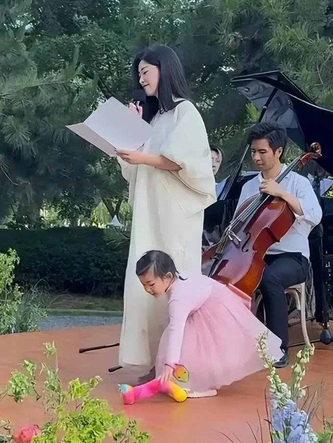 朱珠帶女兒參加活動,女兒穿公主裙軟萌可愛,40歲她溫婉有母性美