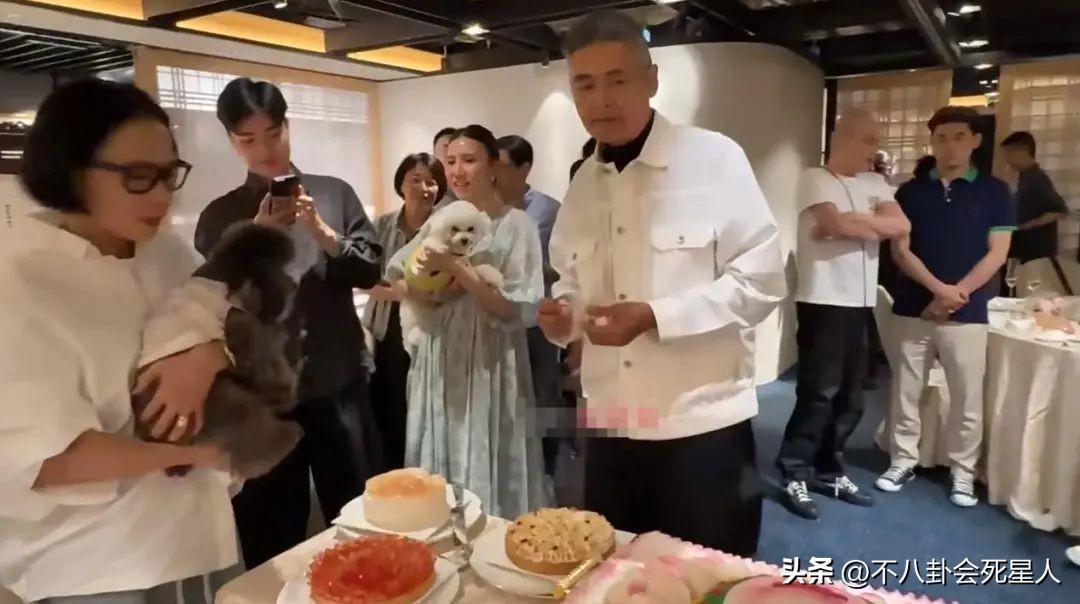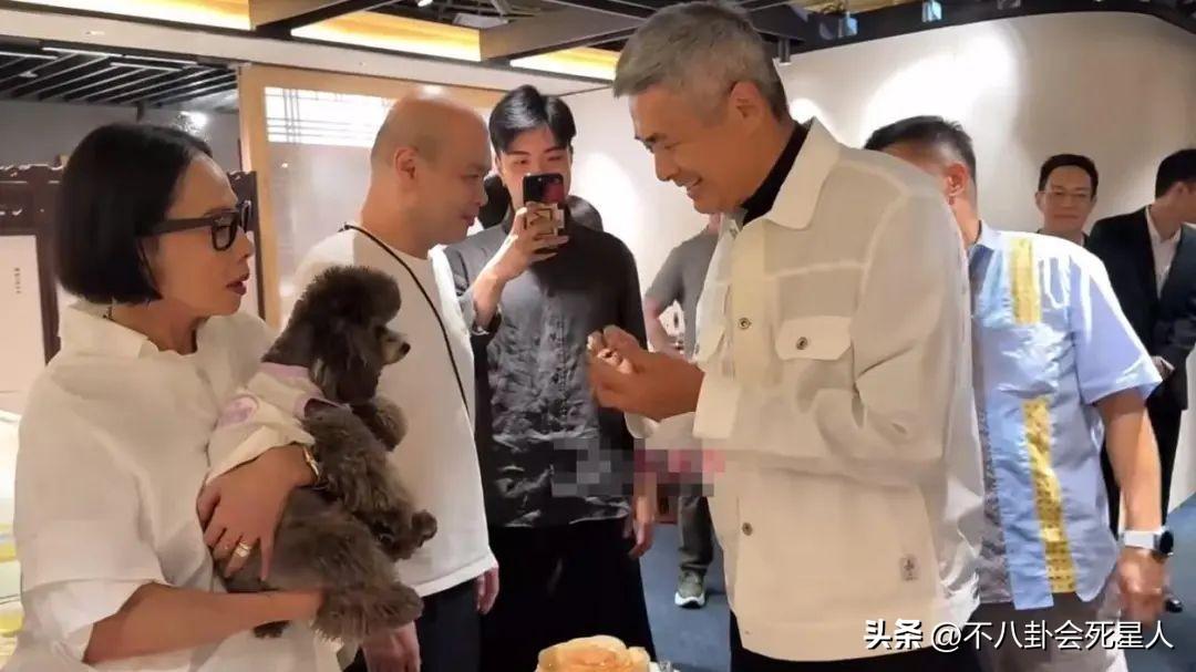 現場還有一個引起大家注意的細節,那就是周潤發的妻子陳薈蓮手裏抱着一隻寵物狗,周潤發還親自喂小狗喫東西,並且讓小狗親吻自己。