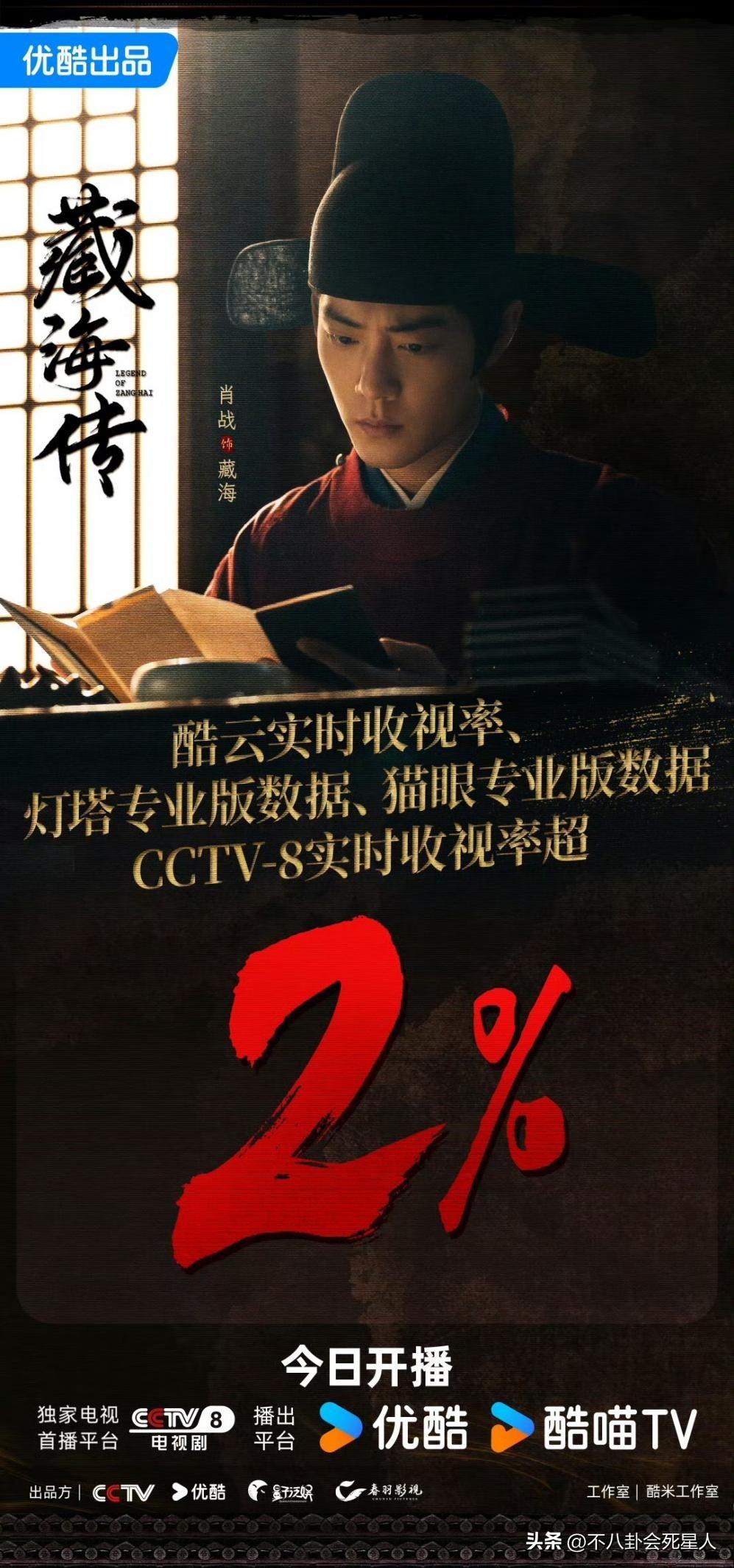 《藏海傳》開播首日就打出了漂亮一仗,5小時內優酷站內熱度破8000,38小時熱度破萬,創下平臺新紀錄,成爲2024以來最快破10000劇集,目前熱度已破10200!酷雲實時收視率、燈塔專業版數據、貓眼專業版數據三平臺實力認證CCTV8實時收視率超2%,滿廣9廣,數據也在各大榜單直接登頂,成績非常喜人!