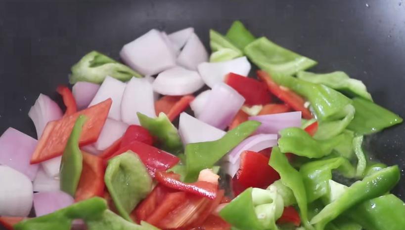 2、 將洋蔥、青椒清洗乾淨,切成片;大蒜切成末。