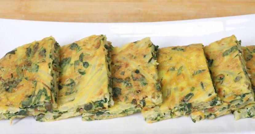 7、 將煎好的馬齒莧土豆絲餅切成小塊就做好。