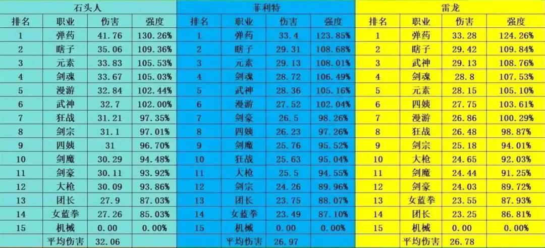 但那也是因爲大佬們打造比較好的緣故,相同打造下,這3個職業和彈藥、修羅等都有很明顯差距。