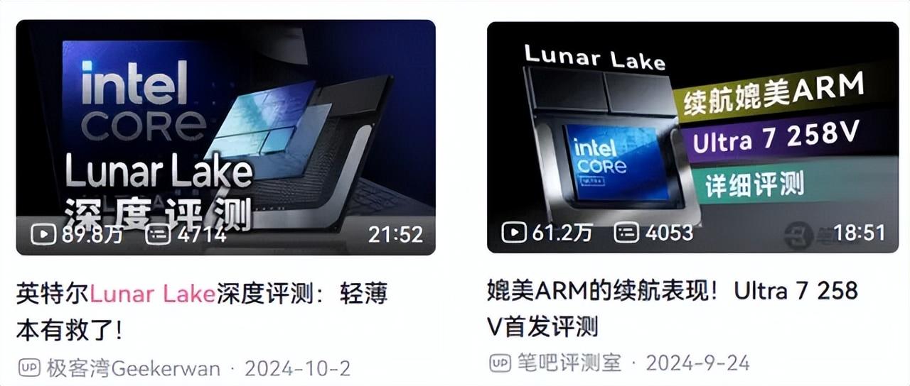 關於Lunar Lake的能耗比,看筆吧和極客灣的評測標題基本上就有數了