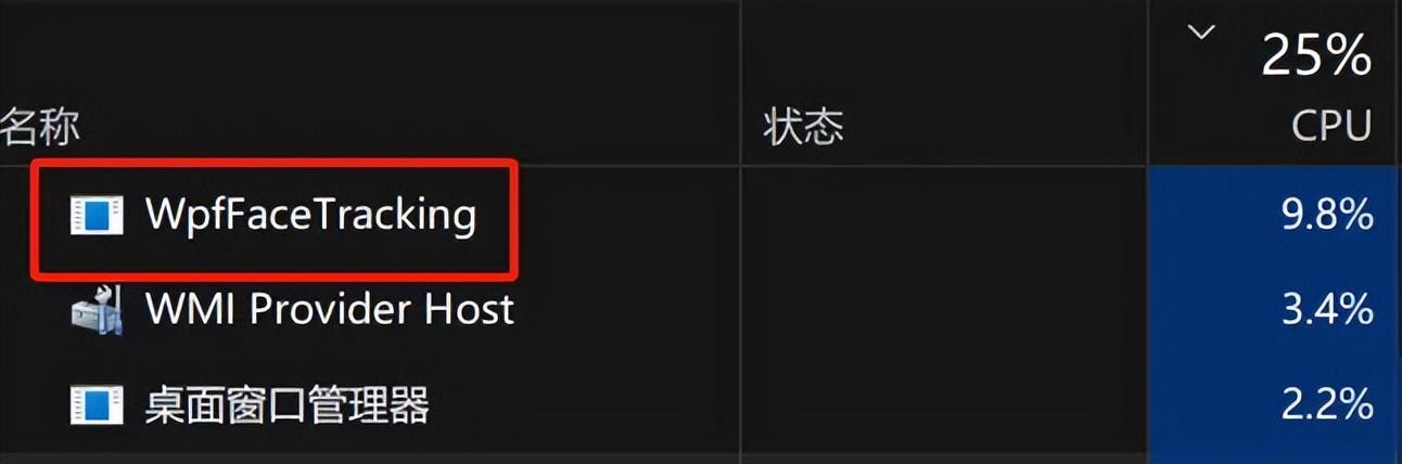開啓3D後,系統進程中還會有一個WpFaceTracking的進程,會佔用大約10%的CPU資源,顧名思義,是用來追蹤眼部的程序,這是裸眼3D的關鍵