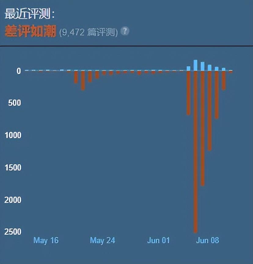 但短短几天,遊戲的近期評分就跌到了“差評如潮”。在最近30天內的用戶評測中,好評率達到了驚人的10%。