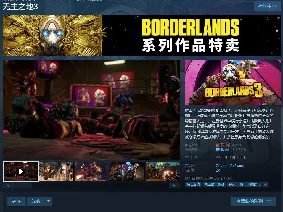 但玩家羣體對此回應並不買賬,“差評”的風甚至吹到了其他遊戲,包括《無主之地》《無主之地3》和《小緹娜的奇幻之地》。