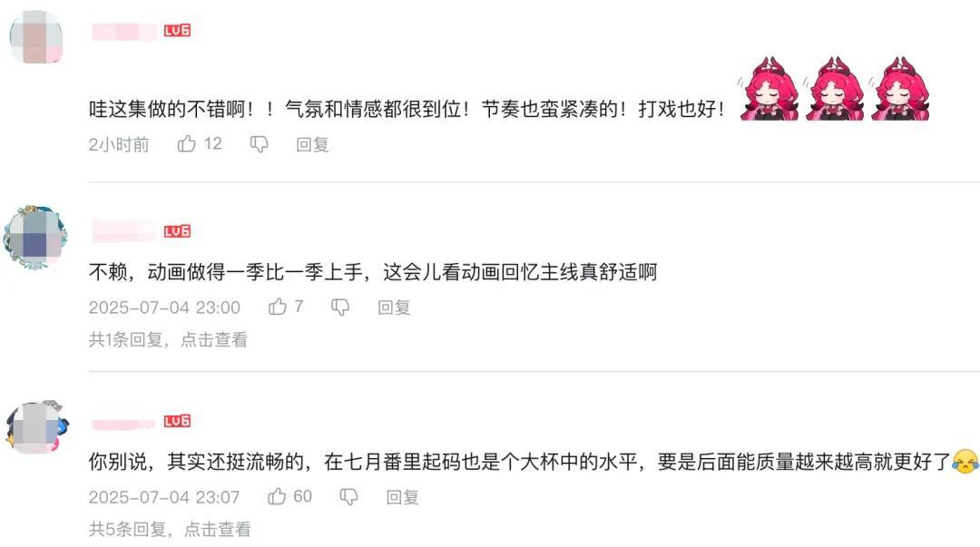 作爲一部遊戲動畫,《明日方舟》主線動畫前兩季很好地完成了“主線劇情貫穿始終”的任務。即便是在面向大衆,觀衆口味更挑剔的N站,在對第二季最終話的生放評論中,“很好”也佔了超過八成。