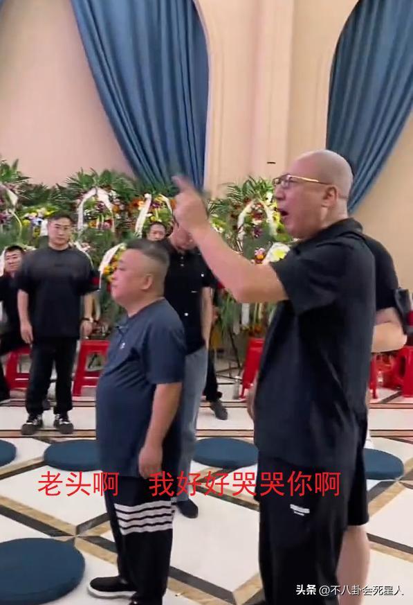 起身之後,汪洋指着楊老的遺像,情緒激動的大喊“老頭啊,我好好哭哭哭你啊”。