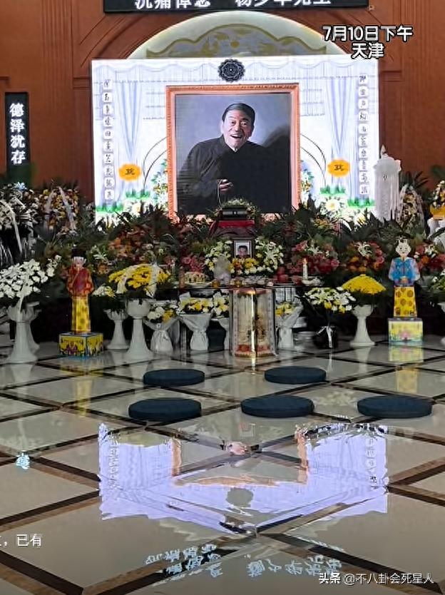楊少華的靈堂布置的莊嚴肅穆,鮮花環繞着楊老的遺像,兩邊擺滿了相聲圈各界人士送來的花籃。