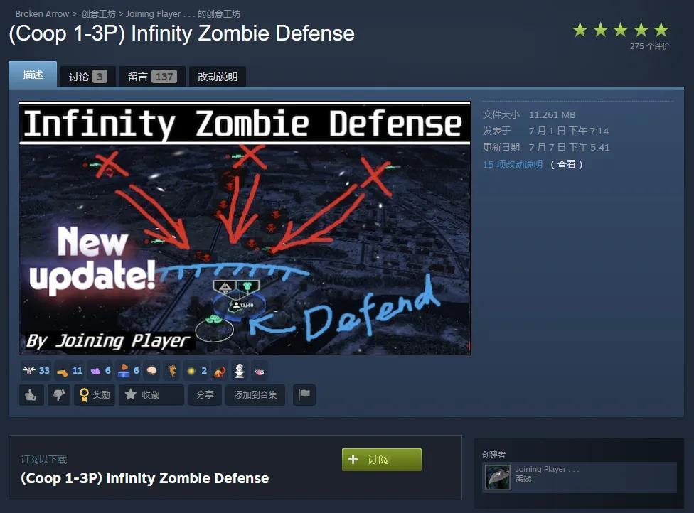 值得一提的是,遊戲編輯器已經接入Steam創意工坊。現在工坊上已有數十個玩家自制劇本,訂閱後刷新遊戲內列表即可遊玩,使用非常方便。