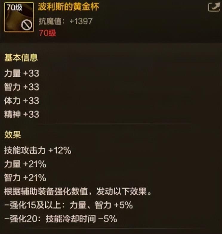 核心屬性爲:+12%技攻,+21%力智,根據強化額外提供5%力智和5%冷卻縮減!
