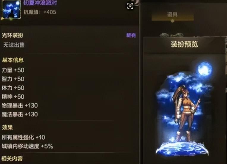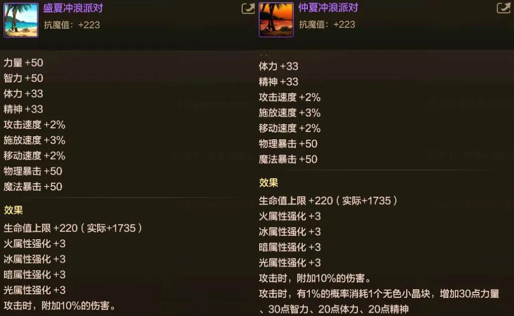 用5個夏日硬幣可兌換“初夏衝浪光環”,核心屬性爲「50點四維+130暴擊+10全屬強」,基本持平白金光環。