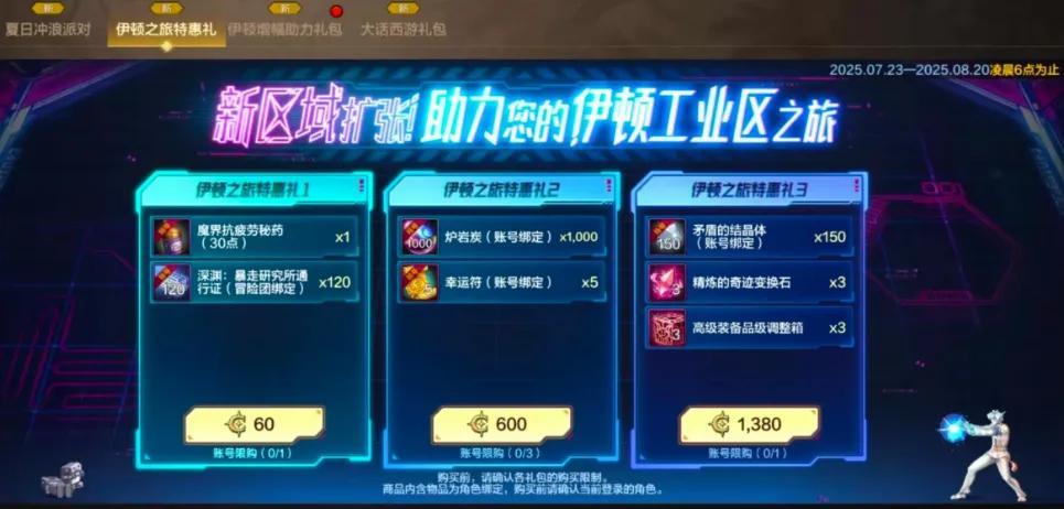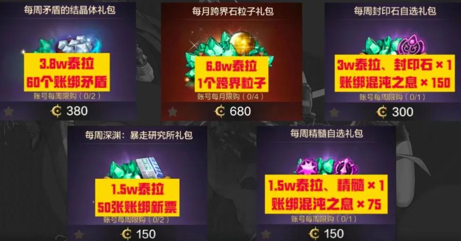 也分爲3個檔次的禮包,按照賬號限定購買次數: