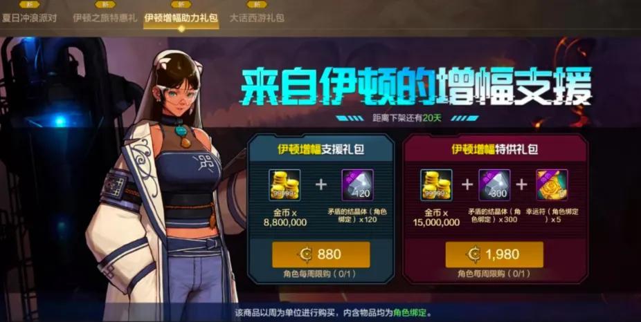「增幅支援禮包」880點券,包含880萬金幣+120個矛盾結晶體
