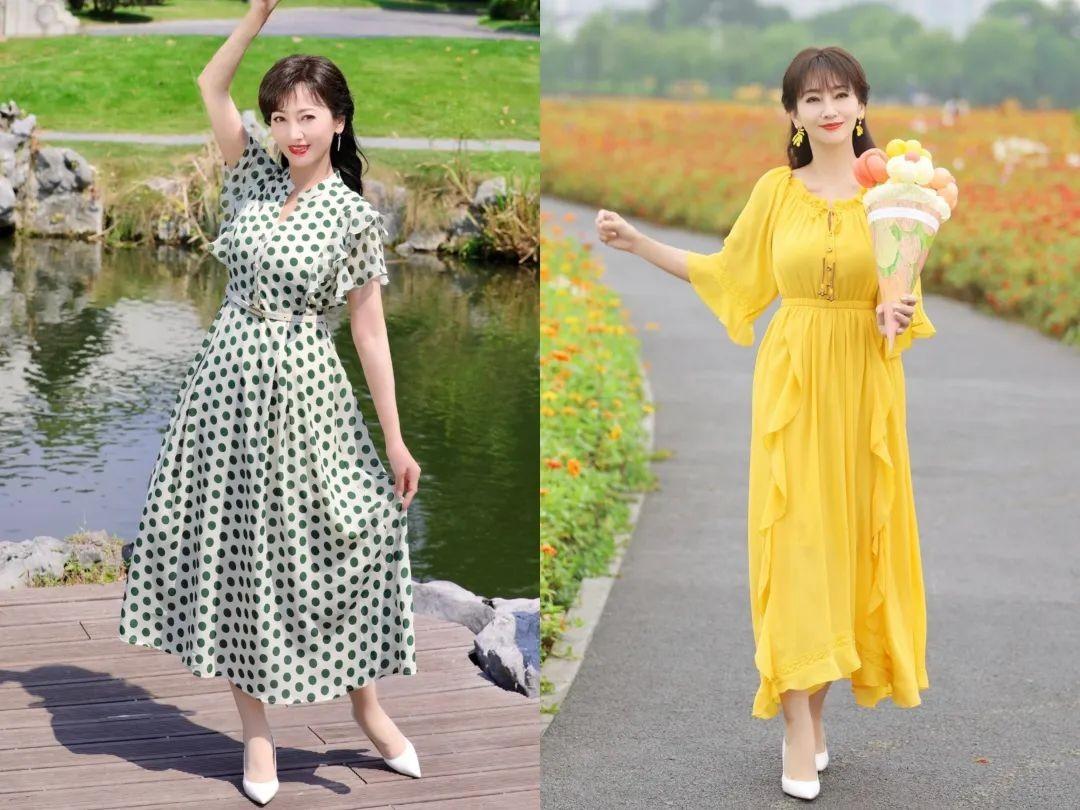 大齡女人的穿搭是很有講究的。尤其是長裙的搭配,裙腰位置要微微收緊,顯瘦又顯高。風格上儘量偏優雅、中式或者輕熟,裙襬長度“過膝不過踝”,時髦圖案上做減法,增加留白麪積更高級。