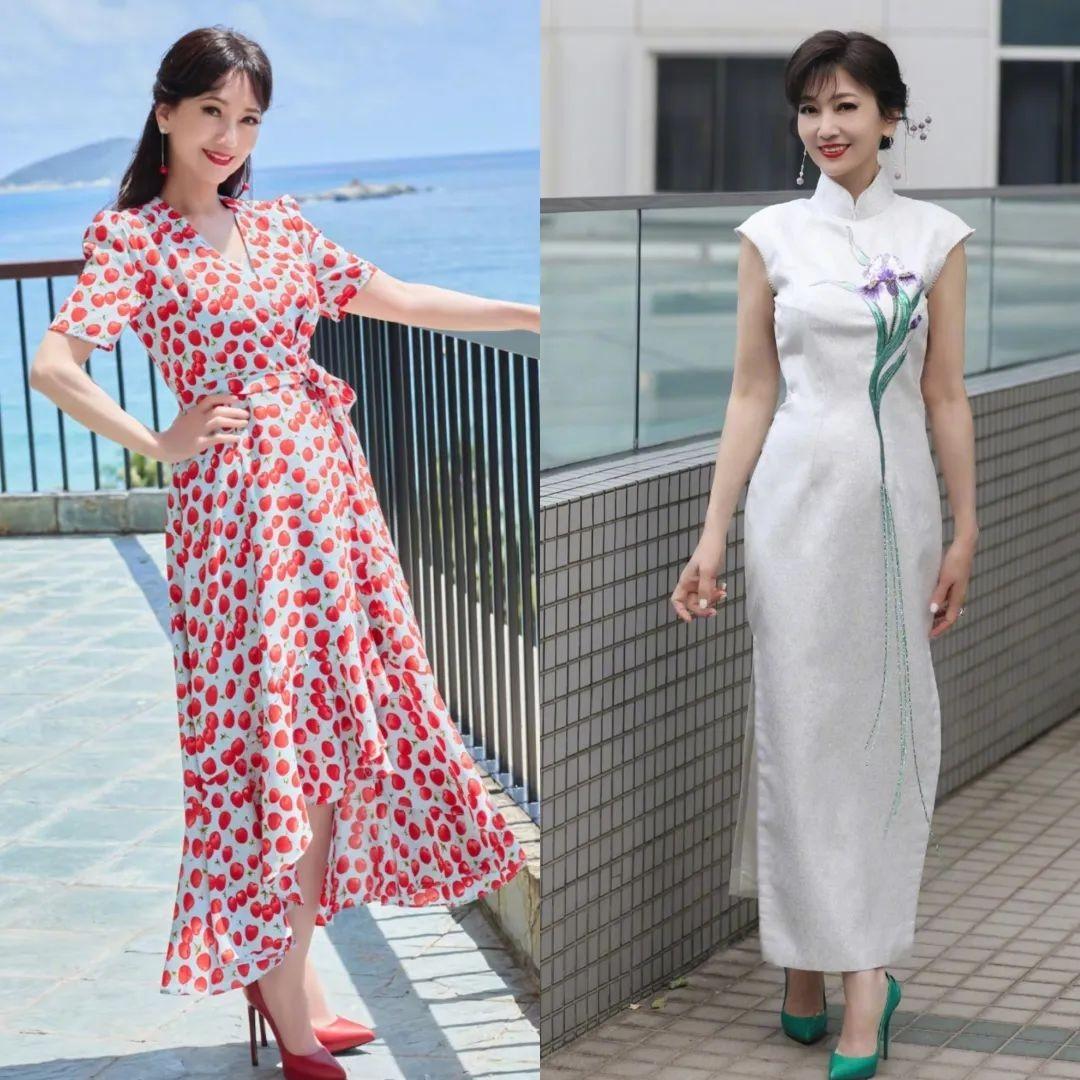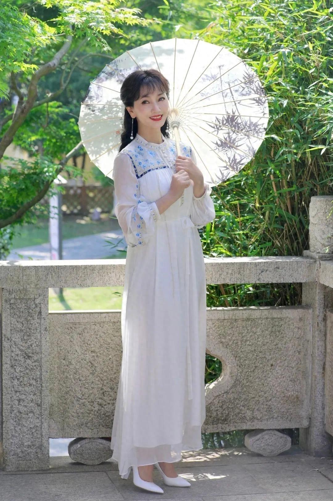 不得不說,趙雅芝真是“長裙愛好者”。她的長裙造型數不勝數,各種收腰連衣裙,配雙尖頭低跟鞋,優雅到骨子裏,再配合上一頭半扎發,真是美到了骨子裏。