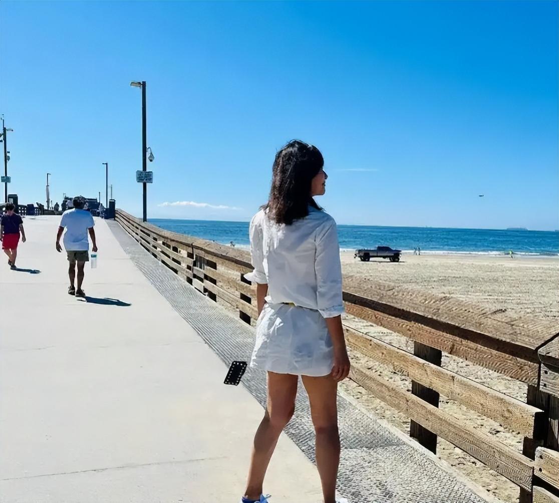 已經49歲的徐靜蕾,眼看着到了半老徐娘的階段,可是穿衣打扮卻完全不顯老氣,身穿白色襯衣配黑色半身裙,四肢線條依舊纖細修長,留着一頭披肩發,氣質簡直太出衆了。