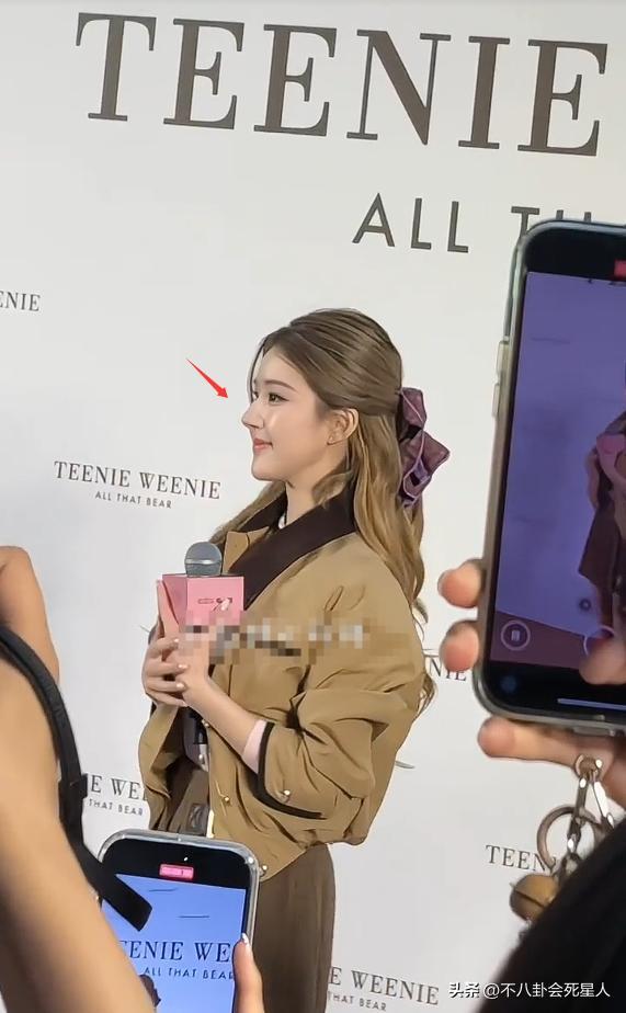 只是從側面看,趙露思鼻子的形狀有些奇怪,鼻樑處凸起的部分過於突兀,像直角般聳立起來的,線條感不夠流暢。