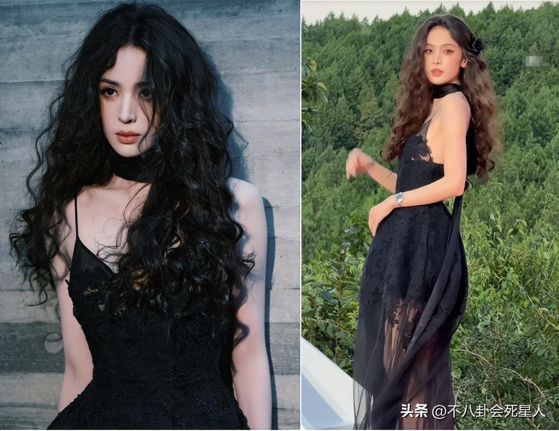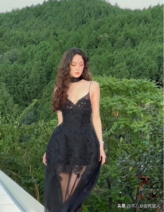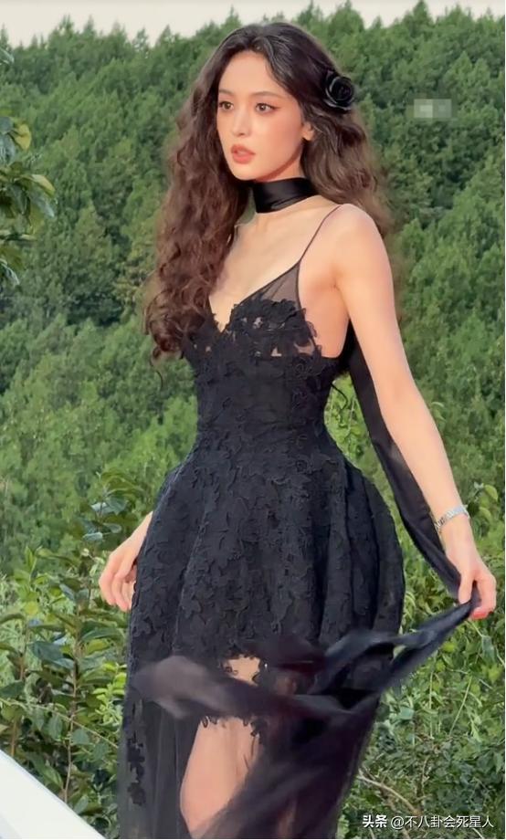 娜扎穿了一件黑色蕾絲款吊帶裙,但質地看上去並不高級,有種廉價的網紅風。