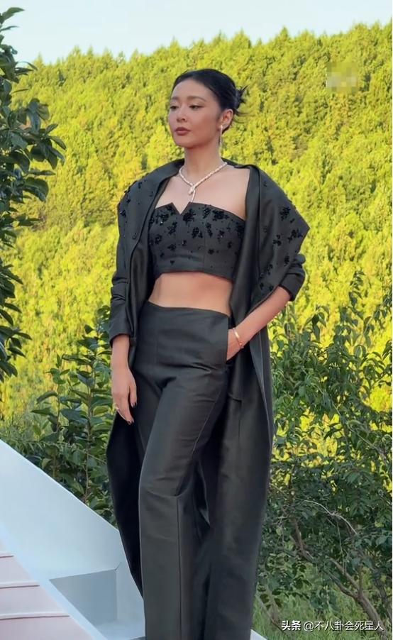 高葉是褲裝亮相,一如既往的大姐範,舉手投足間盡顯女王氣質,超短的露臍裝,顯露其平坦緊實的小腹。