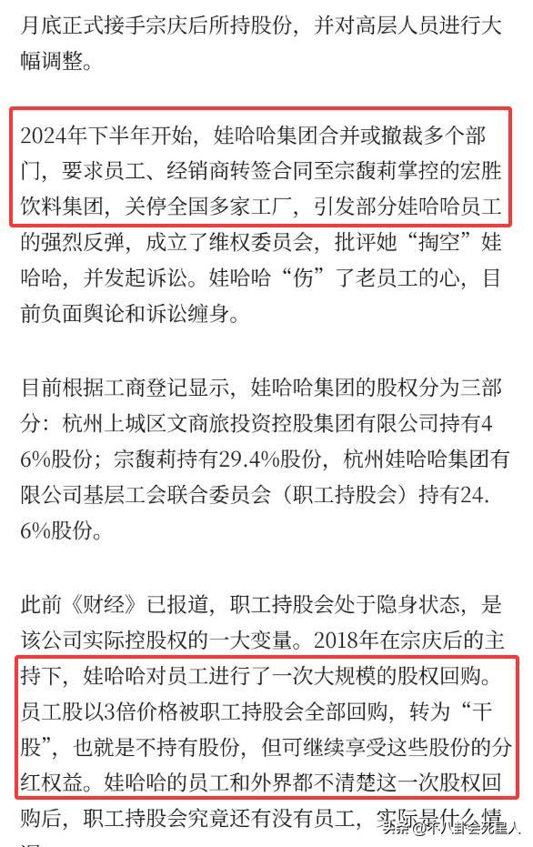 而所謂老員工背刺、親叔和家族宗親對她的詆譭,無非也是因爲宗馥莉收歸了這些老員工、宗親的“權”。