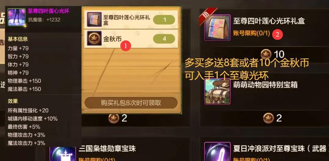 第一,“多買多送”拉滿8套,直接送1個新至尊光環;
