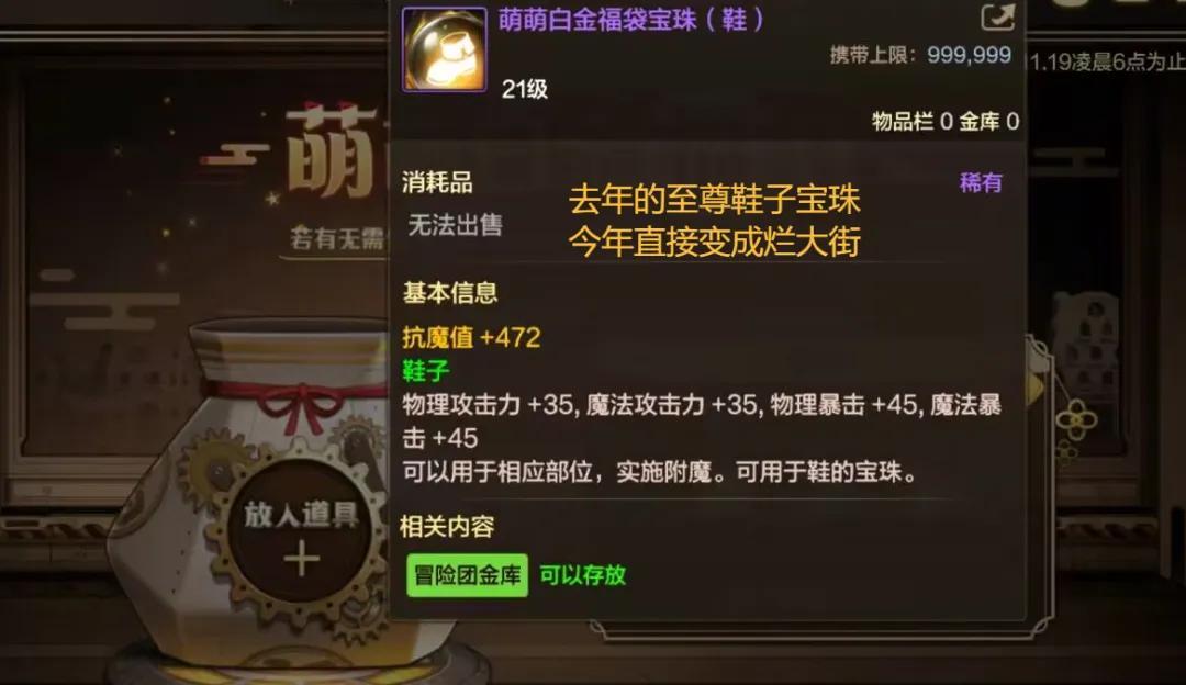 對比去年的“老至尊鞋子寶珠”,實際提升大概在4.3%左右,增加296點抗魔值!