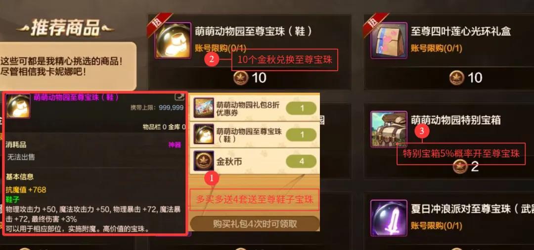 這裏比較推薦的是“舊至尊鞋子寶珠”,購買1套禮包就可以獲得;