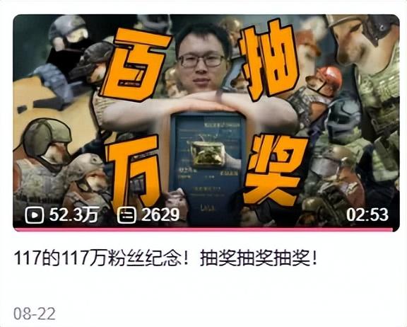 自2023年中發佈第一個視頻以來,117作爲暗區策劃代表人物在玩家羣體中享負盛名。僅看B站,兩年內已發佈近80個視頻,平均播放量超過60萬,上個月還達成了粉絲數117萬的成就。