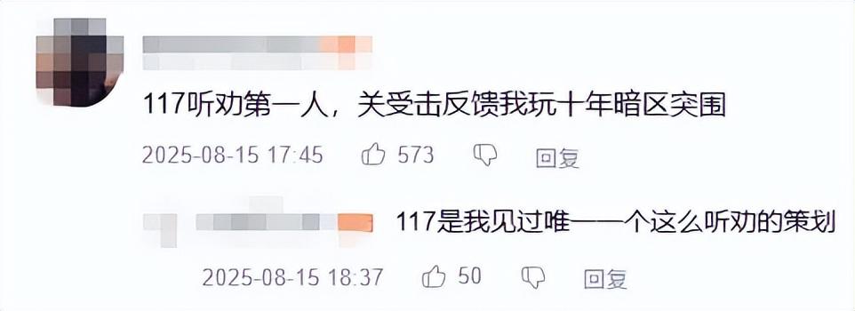 但他又保持了一種微妙的邊界感。現在很多產品也愛立“聽勸”的人設,具體表現就是動輒給玩家跪下來,將玩家的牢騷視爲聖旨,把自身擺到比玩家低得多的層級去。不是說這麼不行,而是遊戲終究需要通過產品提供服務。117更多時候以一種不卑不亢的狀態在視頻中插科打諢,反倒活人感更強,這種正視玩家的平等姿態,也更利於就事論事,將話題聚焦於產品本身。
