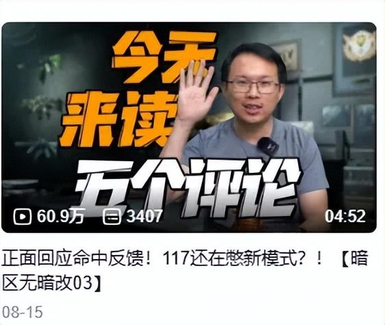 117的視頻中曾有這麼一段對話,主持人問117能否保持《暗區突圍》的風格未來一直不變,他沒有乾脆回覆是或不是,而是迂迴地表示: