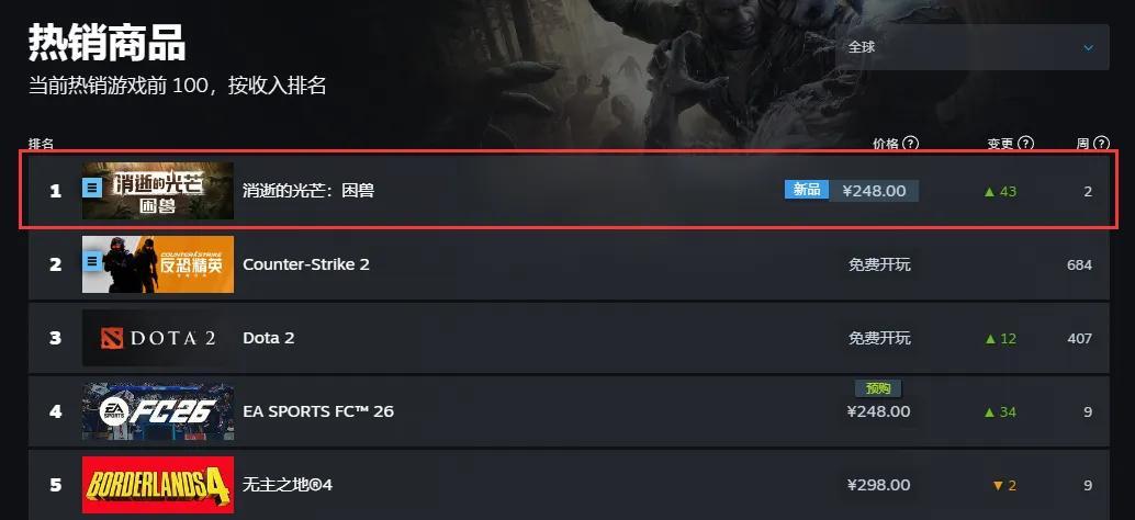 遊戲發售1小時後,就成功登上Steam全球暢銷榜榜首,同時實現中、美、歐洲多國等主流地區和國家的全面登頂。