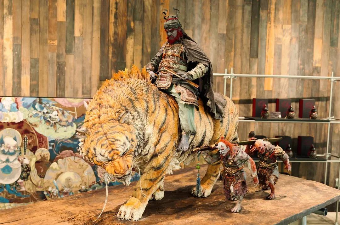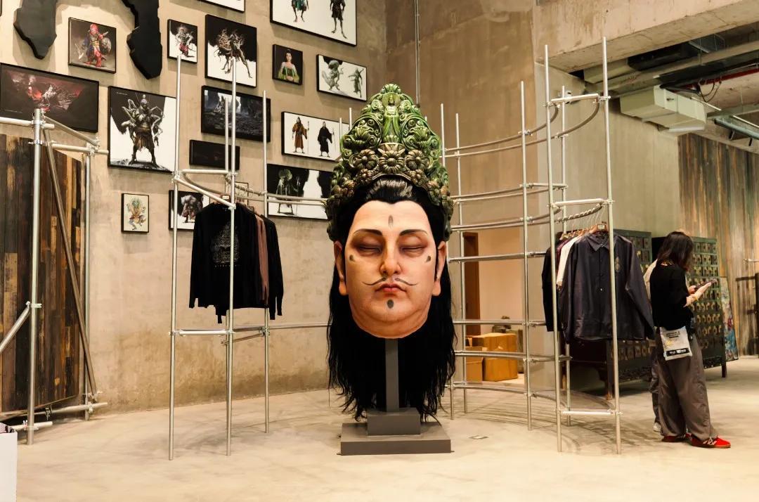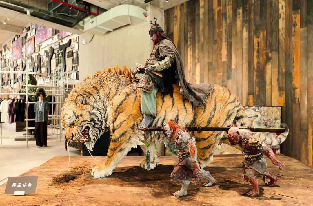 相較於購買黑神話IP的商品,這家店鋪差不多可以當成一場純展覽來看。店內空間極爲寬敞、展品與商品穿插陳列,大量雕塑、模型、繪畫裝置一一鋪陳,整體視覺非常“有展感”。