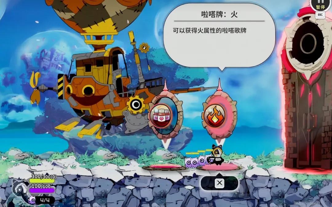 不同於過去的傳統關卡制,《Ratatan》中的每一小關前,玩家都會面臨着二選一的房間選擇。它和《黑帝斯》系列類似,玩家面對的可能是商店、獎勵、局外資源或是影響一局構築的技能天賦。