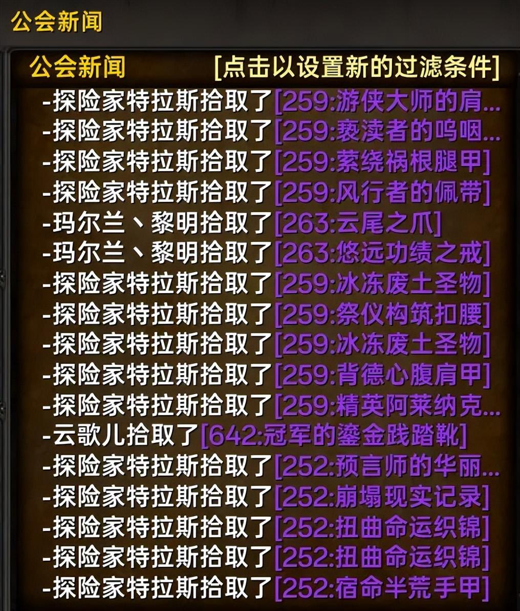 不過,週四的一切美好都和運氣有關。每個週四的早上我都能看見微信羣裏朋友們的哀嚎:“低保又黑了!”;每個週四的深夜我也能在公會新聞裏看到好友刷了一大堆冰冠堡壘的紫裝然後默默下線,看來是準備下一週再戰巫妖王了。