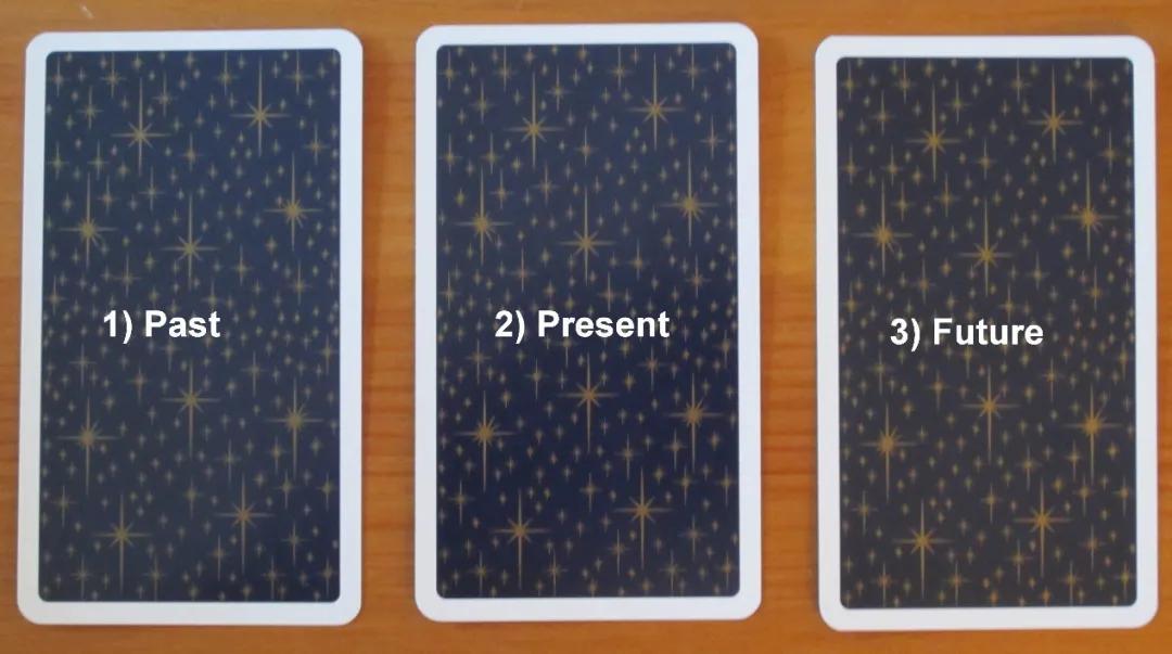 我使用的是最常見的萬能牌陣,也就是翻出3張大阿爾卡那塔羅牌,分別對應過去、現在和未來的情況。