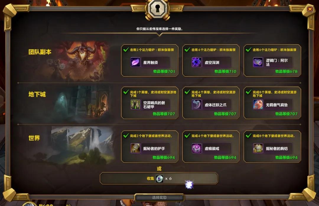 而追求角色成長的玩家,不僅可以再次獲得團本的裝備,還可以開低保了——只要玩家上週打過足夠多的副本,週四就可以在銀行的“宏偉寶庫”隨機獲得一件遠強於正常掉落的裝備。