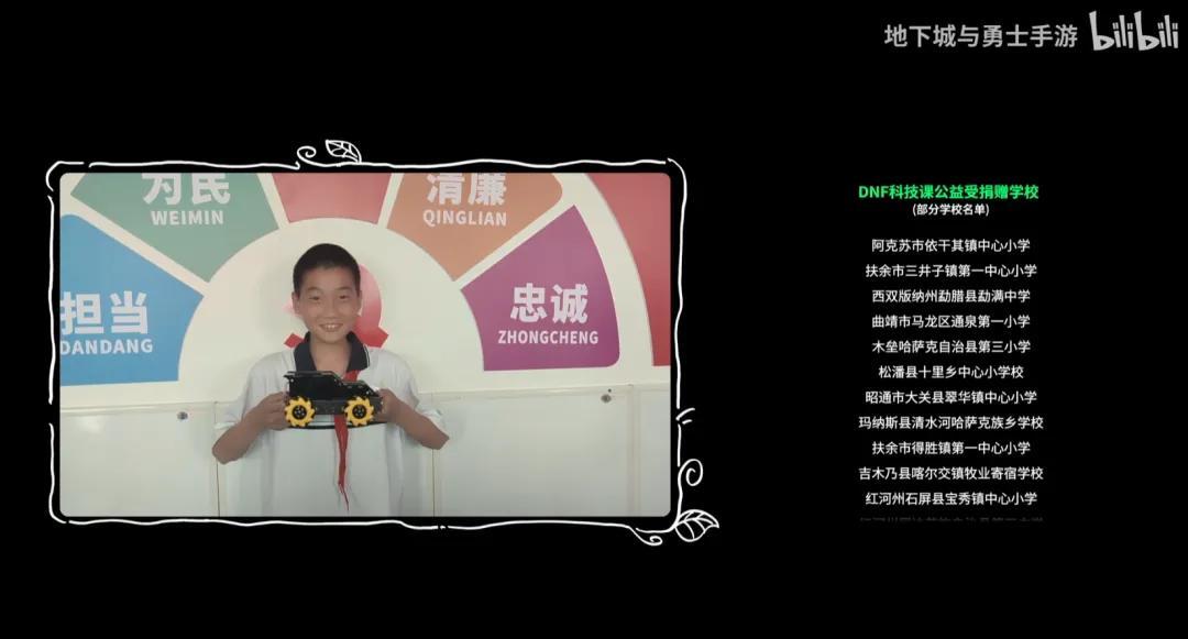 除了提高欠發達地區的教學條件外,官方還在後續的DNF線下嘉年華中,專門開闢了一個公益專區,用以展示過往因爲公益活動受到幫助的學生創意作品,讓所有玩家親自上手瞭解學生們的科創成果。