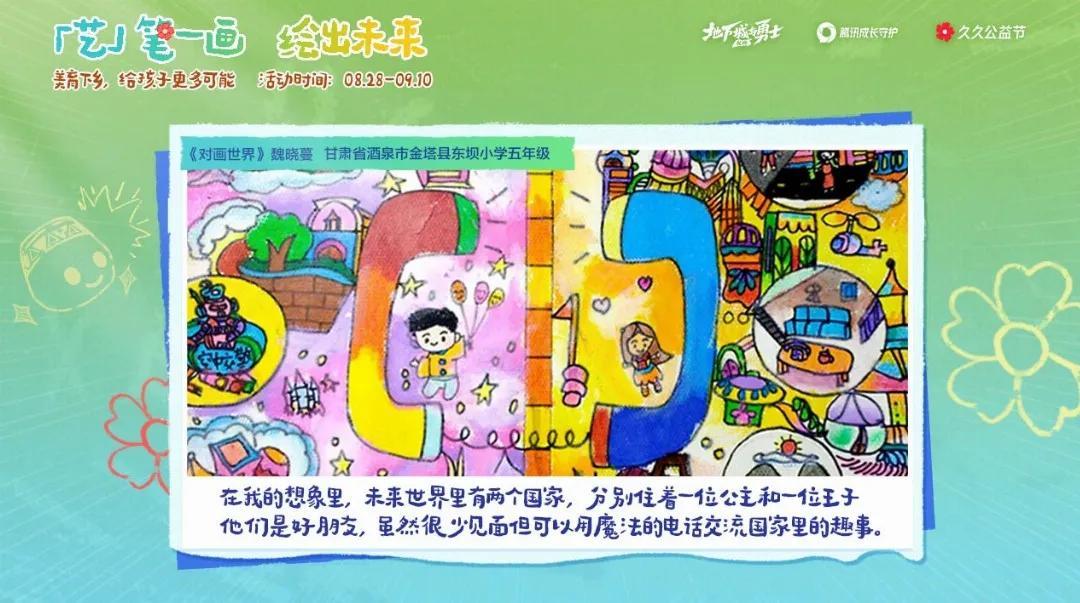 但一個月前,它和其他幾幅來自大理州小學生的作品一同成爲了《地下城與勇士》端手遊裏“藝筆一畫,繪出未來”公益活動的美術素材,獲得了相當高的關注度。
