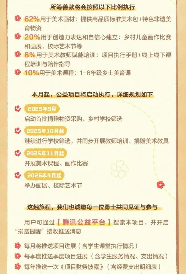 根據官方的信息,目前“藝筆一畫,繪出未來”所籌集的錢款需要等到十月份陸續落地,但從往年的經歷來看,官方對於錢款和最後的資助成果,有着相當清晰的展示。