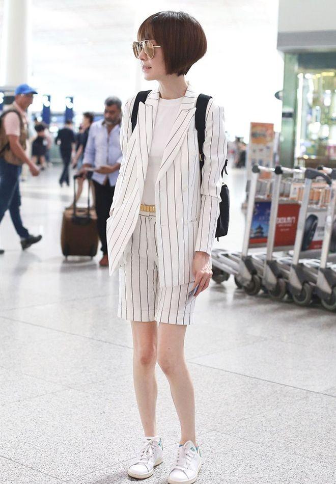 加入了條紋元素的西裝外套和五分褲,巧妙的增加了服裝的立體感,在視覺上可以更好的膨脹身材,使得魯豫的身材線條看上去更加勻稱,避免了過於消瘦帶來的“營養不良感”。