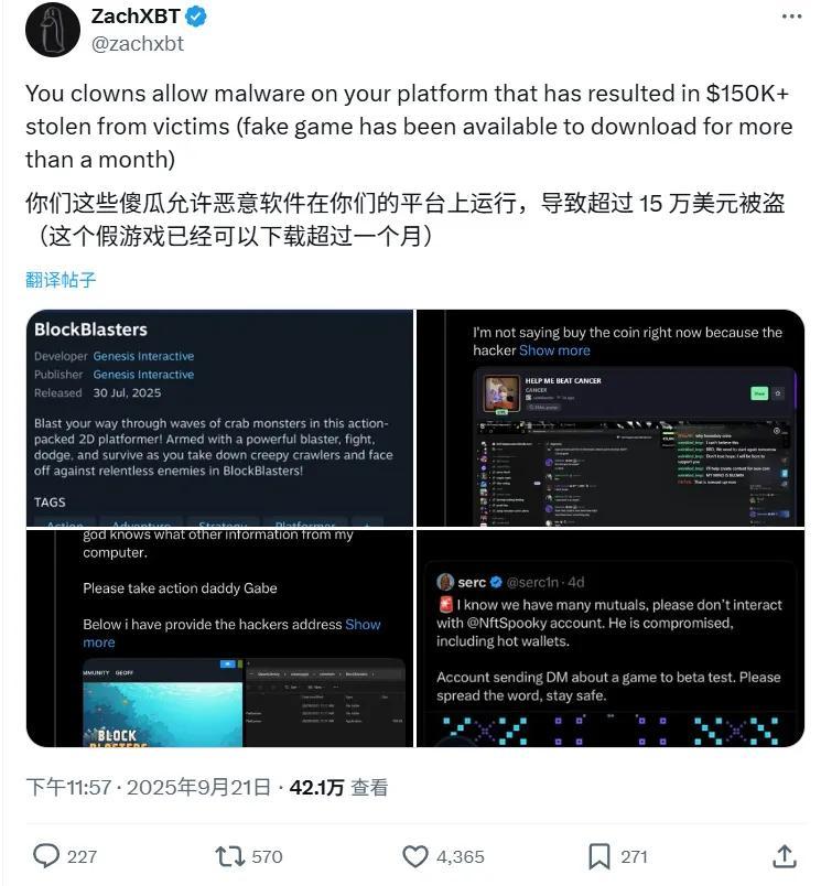 對於海量的遊戲代碼中是否夾帶了惡意程序,平臺可能確實是鞭長莫及。但《BlockBlasters》不是第一個,也不會是最後一個案例——如果不想讓平臺驗證成爲可笑的馬奇諾防線,起碼在完善監管審覈、舉報受理機制方面,Steam還有很多可以優化的地方。