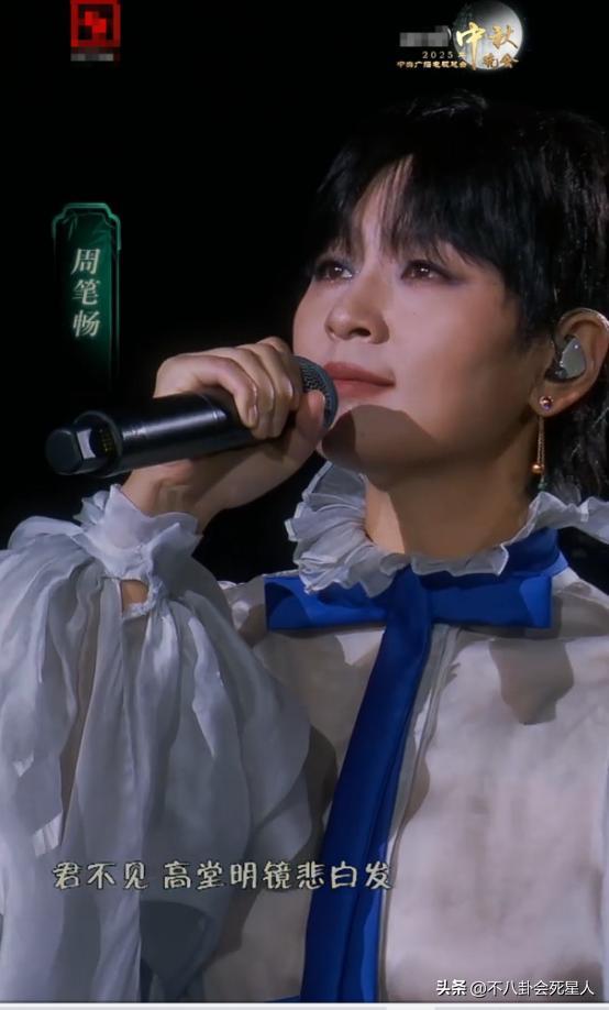 不過今晚也有敗筆,周筆暢的妝造就沒抗住央視鏡頭。